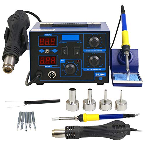 2in1 862d+ SMD Hot Air Rework Station Soldering Iron Station LED Display W/4 Nozzle 110V New Version