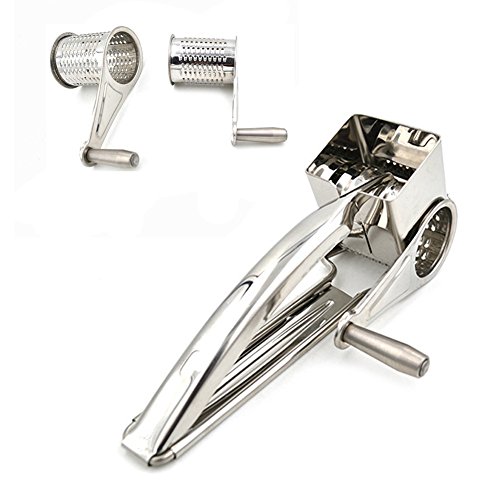 Kitchenhoney two grating drum Hand Wheel Rotary Stainless Steel Cheese Grater Shreds Slicer