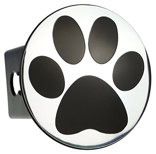 Chrome Metal Embossed Emblem on Metal Trailer Hitch Cover (Fits 2" Receivers, Paw Foot Print)