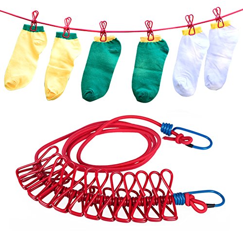 Tuban Clothes Lines Portable Travel Outdoor Windproof Clothesline with 12 Pcs Clips (clothesline with 12 pcs clips)