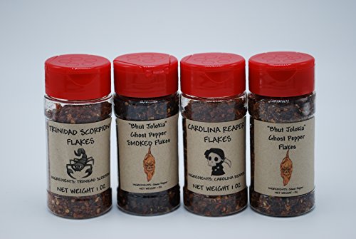(Flakes) Hottest Chili in the WORLD | Carolina Reaper , Trinidad Scorpion , Ghost Chili (Bhut Jolokia) ((FLAKES) GHOST CHILI ( BHUT JOLOKIA ), 1 oz)
