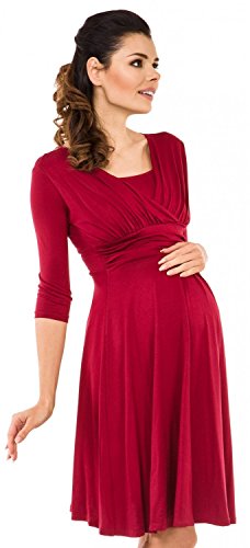 Zeta Ville - Women's Maternity Nursing A-line Dress - 3/4 Sleeves - 526c (Crimson, US 4, M)