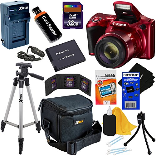 Canon Powershot SX420 is 20 MP Wi-Fi Digital Camera with 42x Zoom, Red (International Version) + NB-11L Battery & AC/DC Battery Charger + 9pc 32GB Deluxe Accessory Kit w/HeroFiber Ultra Gentle Cloth