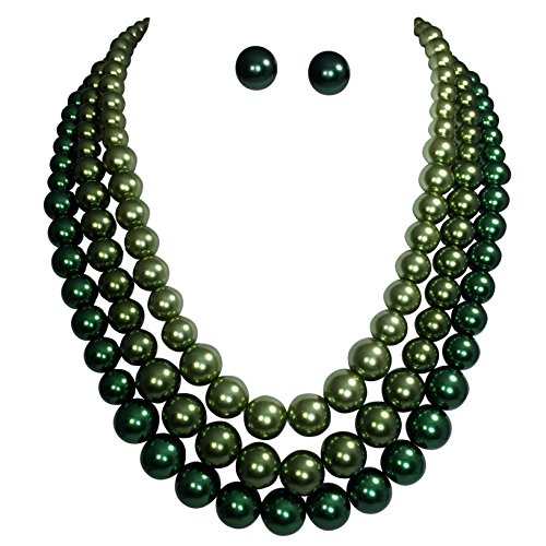 Gypsy Jewels 3 Row Layered Glass Imitation Pearl Bead Statement Necklace Earrings Set