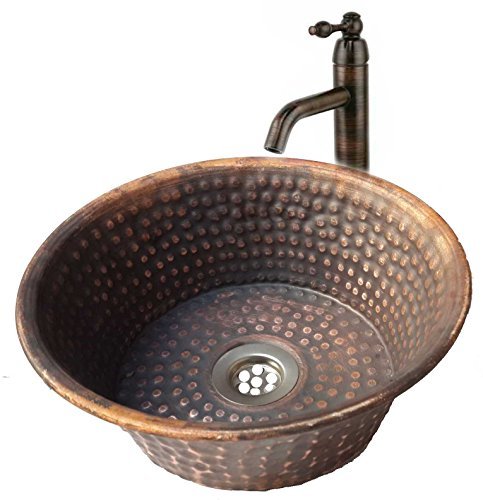 Copper Bathroom Sink Bowl Lavatory Handmade Rustic Fire Burnt Matte Antique Patina Basin