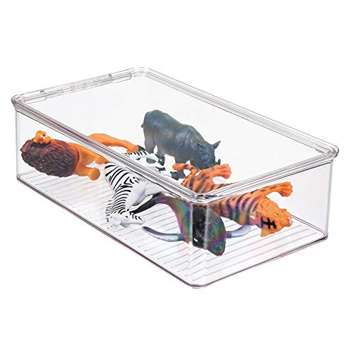 mDesign Stackable Plastic Storage Toy Box Bin with Lid - Container for Organizing Child/Kids Action Figures, Crayons, Markers, Building Blocks, Balls, Puzzles, Crafts - 3" High - Clear