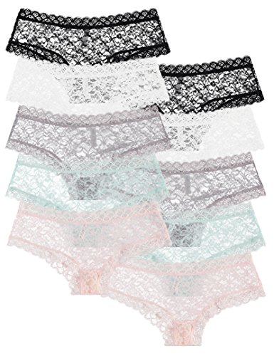 Free to Live 10 Pack Women's Lace Panties - Trimmed Boyshorts Underwear