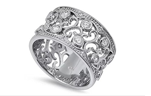 Adena's Jewelry Box New 2016 Sterling Silver Woman's Clear CZ Vintage Ring .925 12mm Band Sizes 6-10