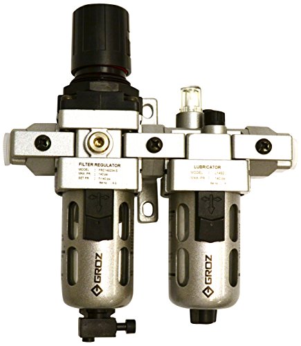 GROZ 3/8-inch Intermediate Filter-Regulator Combination & Lubricator (2 Piece)| Polycarbonate Bowl | 63 CFM Max Flow Rate | 145 PSI Max Pressure | Modular Series (60451)
