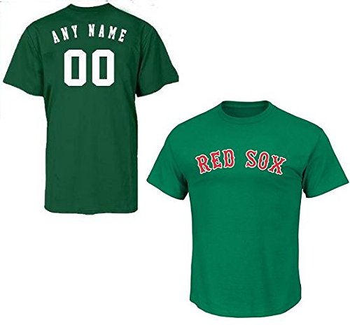 Majestic Green Boston Red Sox Custom (Any Name/# on Back) or Blank Back MLB Licensed Replica Baseball Jersey 100% Cotton Crewneck T-Shirt