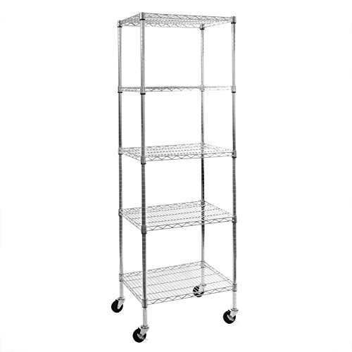 Seville Classics UltraDurable Commercial-Grade 5-Tier NSF-Certified Steel Wire Shelving with Wheels, 24" W x 18" D x 72" H, UltraZinc