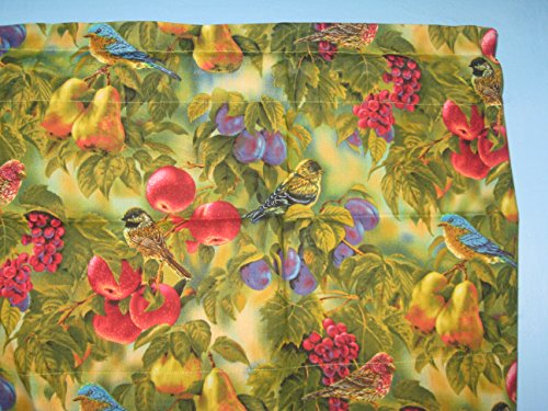 Lined Blue Yellow Red Birds Apple leaevs Blue Berry Handmade Valance
