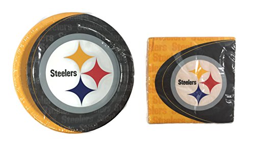 Pittsburgh Steeler Paper Plate and Napkin Bundle; Two Items: One Pittsburgh Steelers Dinner Plates, 8 Count and One Pittsburgh Steelers Napkins, 16 Count