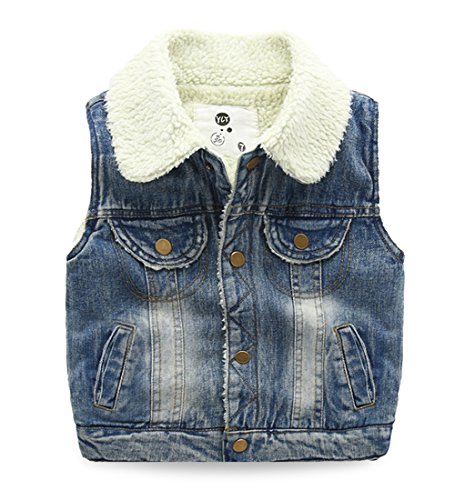 JPY Kid's Boy's Girl's Fashion Leopard Denim Vest Casual Jacket with Velvet