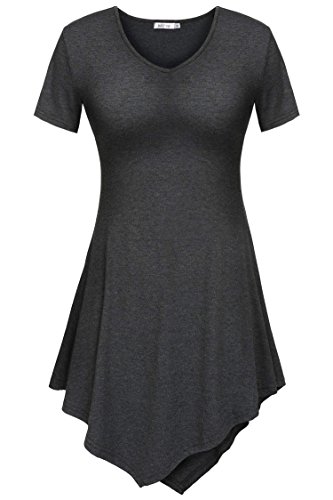 Meaneor Women's V Neck Short Sleeve Handkerchief Hem Lightweight Flare Tunic Top