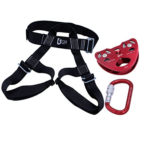 GM CLIMBING Zipline Trolley with Harness Kit Stainless Steel Sheave for kid and adult