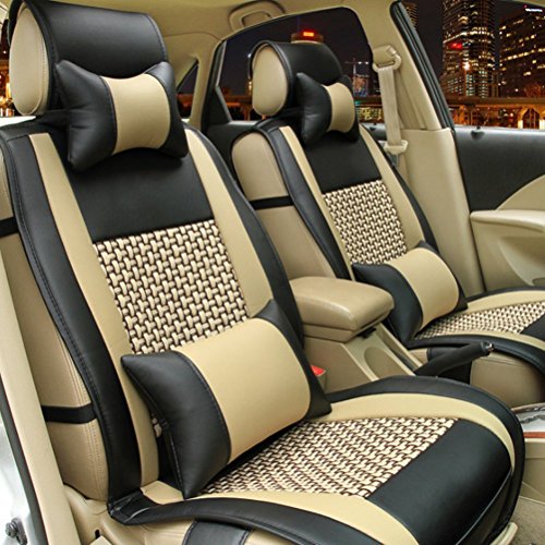E-cowlboy Full Set 10pcs Needlework Pu Leather Front Rear Car Seat Cushion Cover for 5 Seats Vehicle Suitable for Year Round Use (Black)