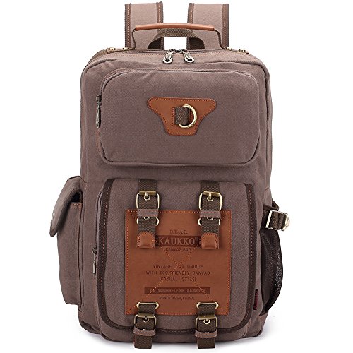 KAUKKO Classic Canvas Backpack with 2 Side Pockets, College School Laptop Bookbag, Satchel, Hiking Bag, Fit 15.6" Laptop, Straps Reinforced