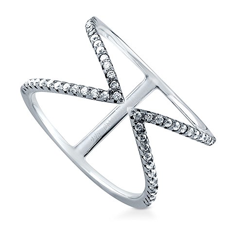 BERRICLE Rhodium Plated Sterling Silver Cubic Zirconia CZ Open Bar Fashion Right Hand Ring