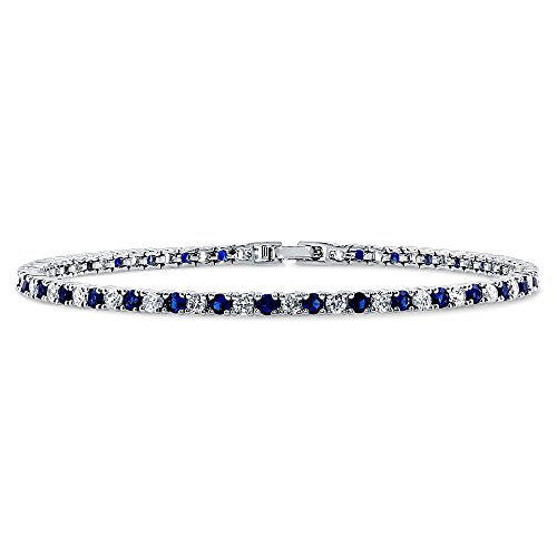 BERRICLE Rhodium Plated Base Metal Simulated Blue Sapphire Cubic Zirconia CZ Tennis Bracelet 7"