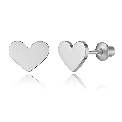 925 Sterling Silver Rhodium Plated Plain Heart Screwback Baby Girls Earrings