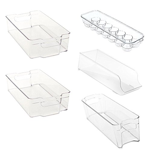 Stackable Refrigerator Bins Set - Soda Can Holder, Egg Holder with Lid - 3 Trays