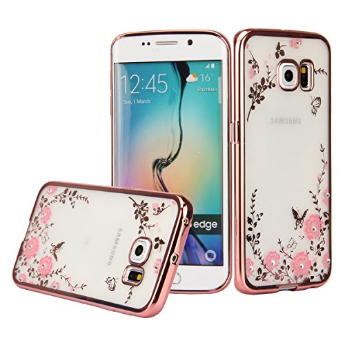 Samsung Galaxy Note 5 Crystal TPU Cover - UZZO Luxury Stylish Design Electroplated Rose Gold Frame TPU Bumper Case With Bling Diamond and Flower Series Clear Silicone Case for Samsung Galaxy Note 5