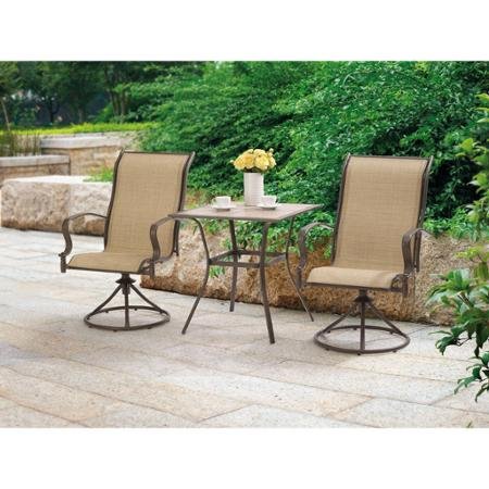 Mainstays Wesley Creek 3-Piece Bistro Set with Swivel Chairs (Tan)