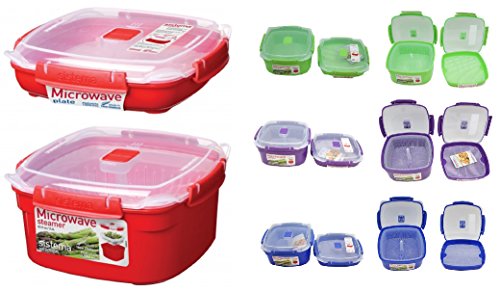 Sistema 2 Piece Medium Microwave Steamer and Plate Set with a Starter Recipe Guide for 15 Amazing Steamer Meals - Assorted Colors