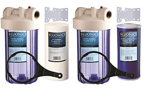 Two 10" Big Blue Whole House Water Filters w/Sediment & GAC Carbon with CLEAR BLUE TRANSPARENT HOUSINGS
