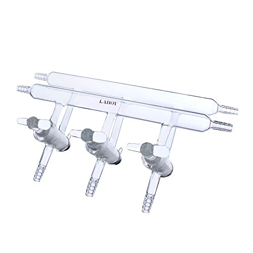 Laboy Glass Double Schlenk Line Maniflod Vacuum Gas Distributor With 3-Port Solid Glass Stopcock All Hose Opens 350mm In Length