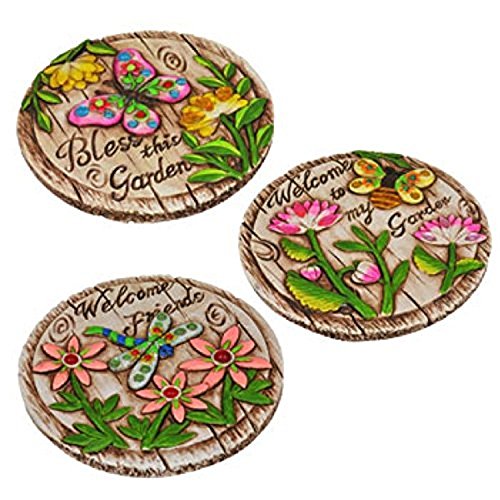 Garden Themed Cement Stepping Stones with Sayings (3 Pcs Set)