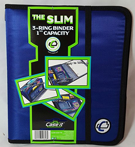 Case-it The Slim 1" Capacity 3-Ring Binder with Built-in Expandable Tab File, 1 Count, Blue (SLIM-630-FN)