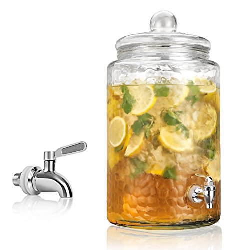 Durable Hammered Glass Large Beverage Dispenser - 3 Gallon Drink Jug - Stainless Steel Leak Free Spigot Included - Home Bar & Party Serveware