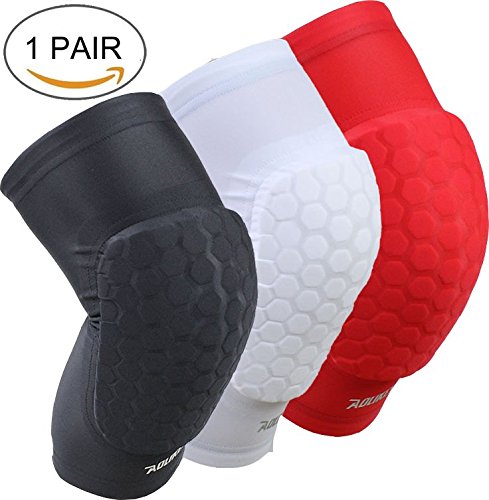 AOLIKES 7066A Nylon Extended Compression Knee Sleeve with Hexpad Protective Pad - One Pair