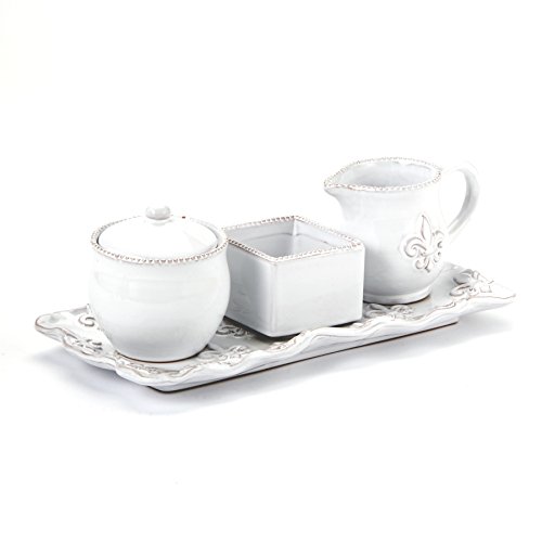 Mud Pie Fleur de Lis Cream and Sugar Set, White