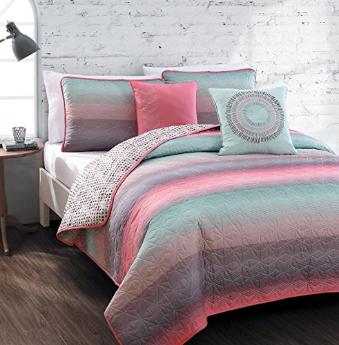 Avondale Manor 5-Piece Cypress Quilt Set, Queen, Coral/Blue