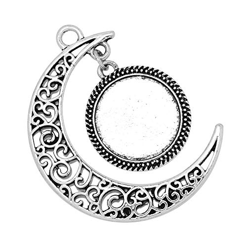 20pcs moon pendant tray,16mm round pendant bezel,metal filled pendant blank,pendant setting,Antique Silver