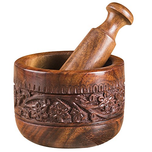 Rusticity Indian Rosewood Antique Mortar & Pestle Mixing Grinder Set for Kitchen/Vintage Rustic Handcarved Spice & Herbs Crusher Bowl/Handmade Decorative Sheesham Manual Kharal Smasher, 4.5x4.5x4 inch