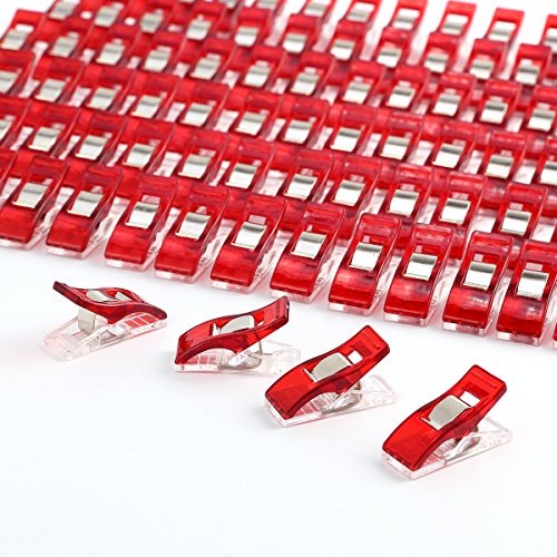 Plastic Wonder Clips Clamps Fabric Craft Sewing Holder Quilter Knitting Crochet (100, red)