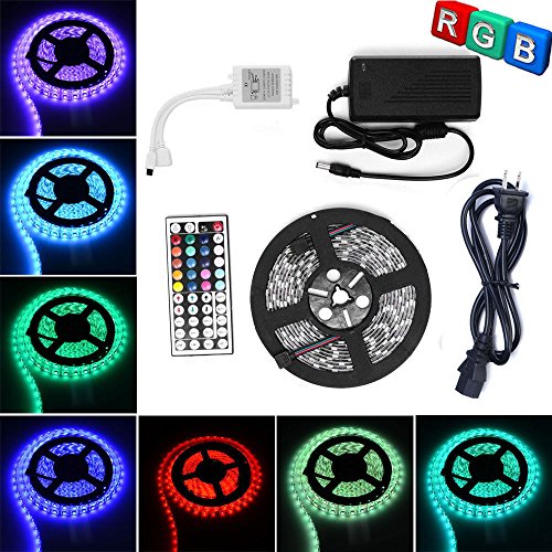 TWOPAGES 16.4ft 5M Waterproof Flexible strip 300leds Color Changing RGB SMD5050 LED Light Strip Kit RGB 5M +44Key Remote+12V 5A Power Supply
