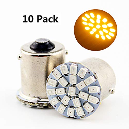EverBrightt 10-Pack Amber 1156 BA15S 1206 22SMD Led Brake Light Bulb Car Turn Signal Light Lamp DC 12V