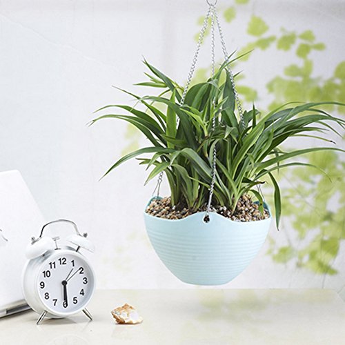 Chunlin Hanging Flower Planter Pot Vase Chain Plastic Basket Home Garden Balcony Decor (Beige)