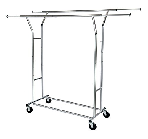 ESYLIFE Foldable Clothing Rack Collapsible Garment Rack with 4 Wheels,Commercial Grade,Double Rail, Chrome