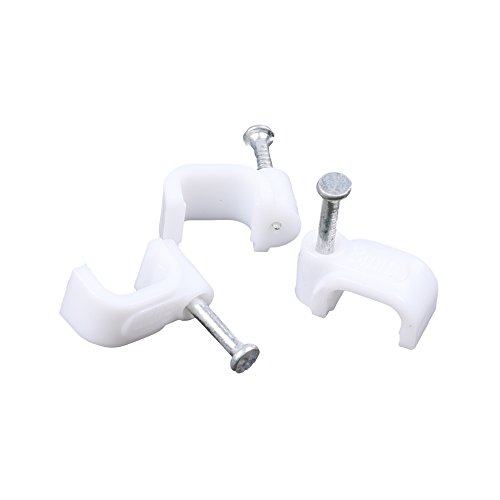 Bluecell Pack of 100 White Color Rectangular Cable Staple Clip With Nail (8MM White Color)
