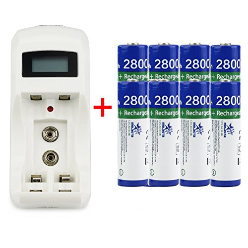 MELASTA Smart LCD Display Super Quick Charger Multi-Protection AC 100-240V AA/AAA / 9V Ni-MH/Ni-CD Battery Chargers + 8X 2800mah Rechargeable Household AA Batteries
