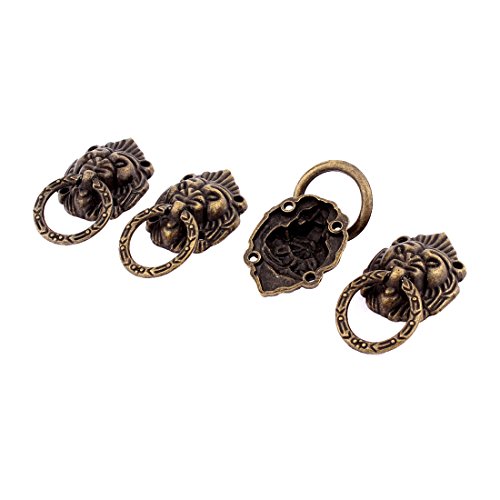 uxcell Cabinet Cupboard Door Lion Face Design Pull Handle Ring 4 Pcs