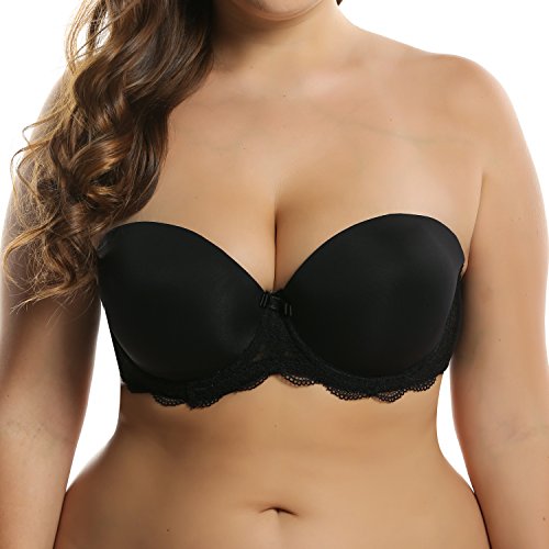 Ekouaer Strapless Bra Women's Plus Size Lightly Padded Balconette Bra 32D-38DDD