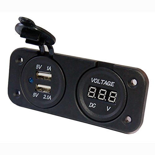 Carviya Waterproof Motorcycle Car DC Digital Voltmeter Dual USB 2 Port DC12V Power Socket Charger Panel Plate Mount