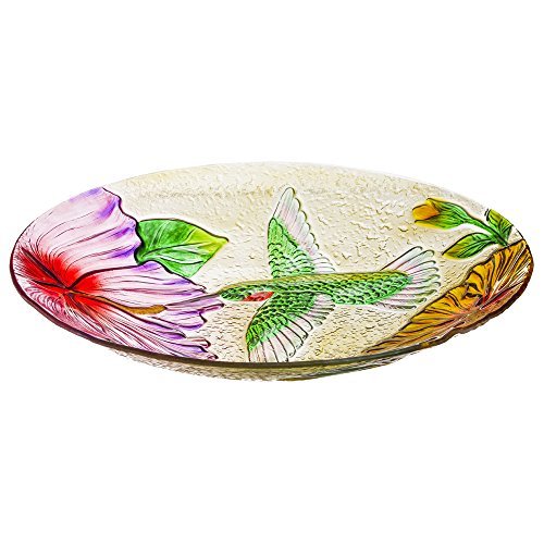Evergreen Flag & Garden 2GB619 Fluttering Hummingbird Glass Birdbath Bowl, 18"